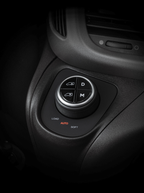 Sie können zwischen einer weicheren Einstellung für komfortables Fahren und maximaler Neigungskontrolle für Spitzenleistung bei voller Beladung wählen. Das intelligente System lässt sich einfach mit dem ergonomischen Drehschalter steuern. Die elektronische Dämpferregelung der AIR-PRO-Luftfederung errechnet automatisch alle 10 Millisekunden die ideale Leistungscharakteristik für jeden der vier Stoßdämpfer und reagiert mit dynamischen Anpassungen auf die Fahrbahnbeschaffenheit. Das Ergebnis? Bis zu 25 % weniger Vibrationen und mehr Komfort auf allen Strecken!